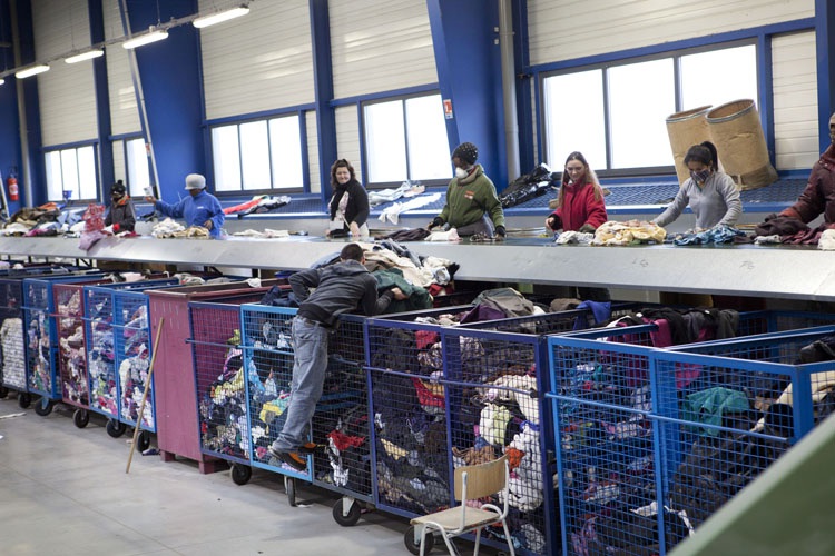 Reportage dans le centre de tri des textiles Le Relais à Ploisy, pour le magazine du Syctom.